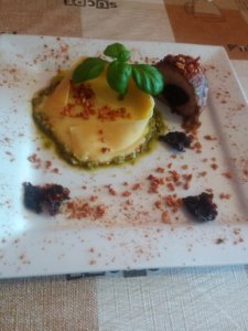 Hozzávalók: sertès szűzpecsenye, aszalt szilva, vörösbor, vaniliás cukor, mèz, só, bors, barna cukor, fahèj, olaj, bacon, kesudió, olaj, pesto szósz