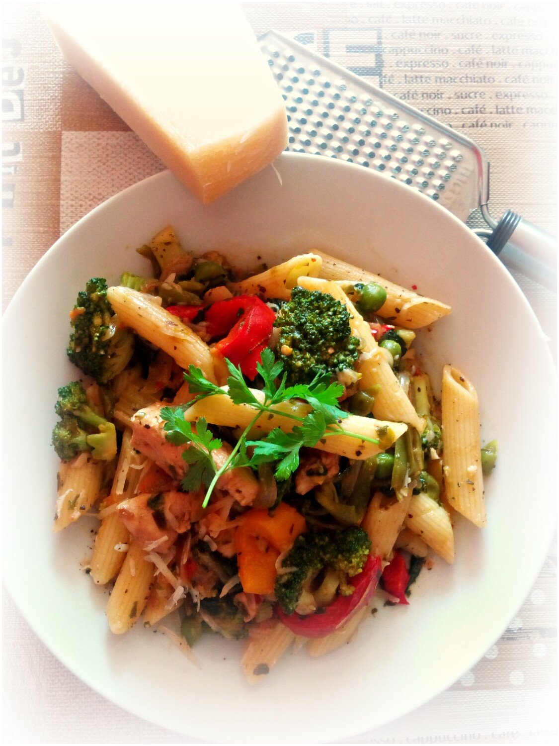 Én penne tésztával tálaltam, Grana padano olasz sajttal